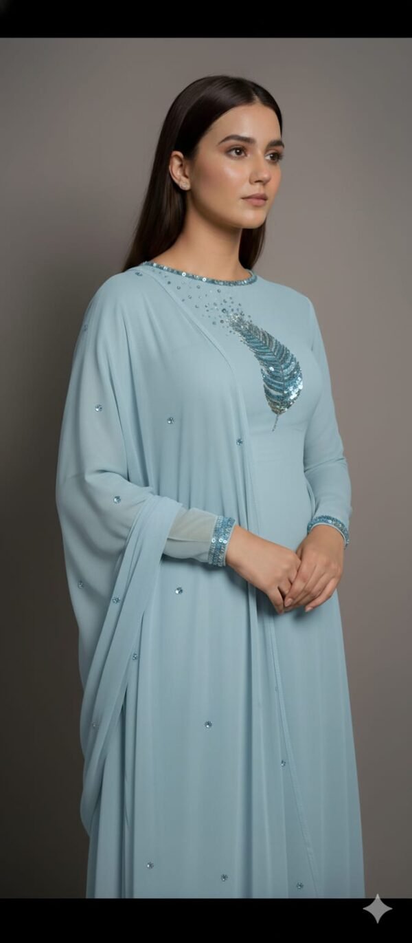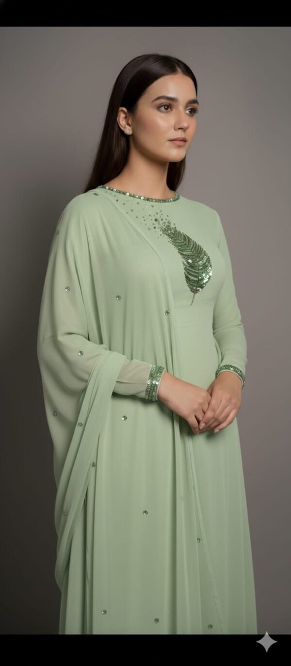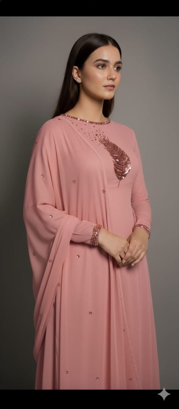 • Dupatta: Lightweight dupatta featuring scattered sequin accents for subtle sparkle