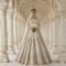 The lehenga radiates a regal charm with its voluminous silhouette, adorned with heritage-inspired motifs that shimmer gracefully in every light. Paired with a matching embroidered blouse and a delicately embellished dupatta finished with ornate borders, this outfit encapsulates luxury from every angle.